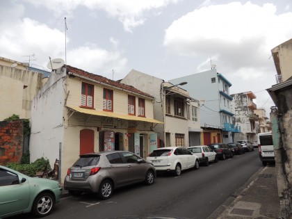 Là, les bacs de survivance, remplis d’eau et ses poissons ; et là, des heurts et des rires d’enfants et l’à-venir déjà en construction. Et, les rues aux tracés de règle, rectiligne, angle droit de rencontres, font coins à la perspective bornée des Pitons et de la Maison du Peuple. C’est le quartier de la rue nue et crue sur trottoir… Toi parvenu à la drive…