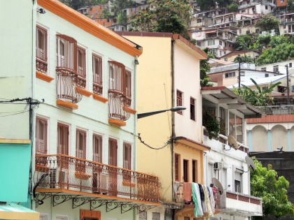 La Mairie de Fort de France en face des Pitons comme pour défier, oui, comme pour défier les deux mornes de chaque côté ; eux, dont les habitants ne cessent de venir à Terre-Sainville, comme au carrefour de quatre croisées. Car ici, c’est l’endroit où roule le tambour, c’est l’endroit des Majò, c’est l’endroit des rencontres et c’est l’endroit des Prélè, c’est l’endroit des couturiers, c’est l’endroit des coiffeurs, des cordonniers… C’est l’endroit de l’informel, disons l’endroit du populaire.