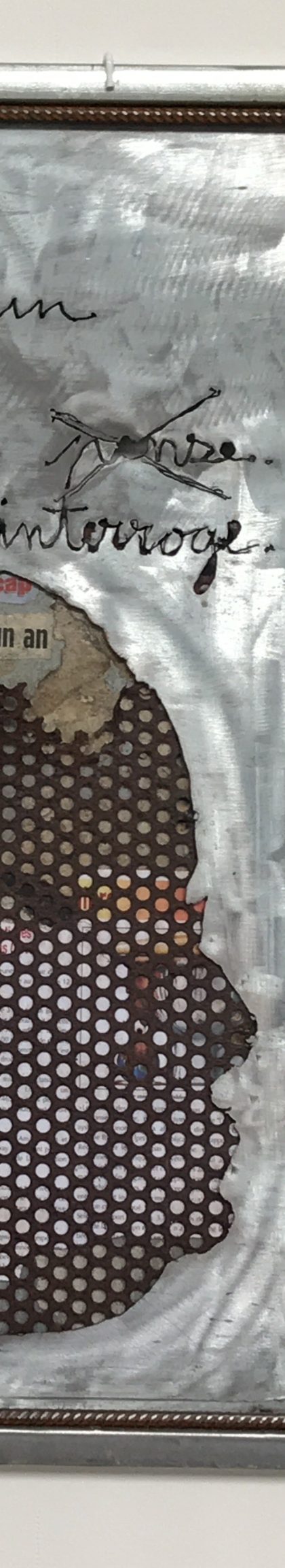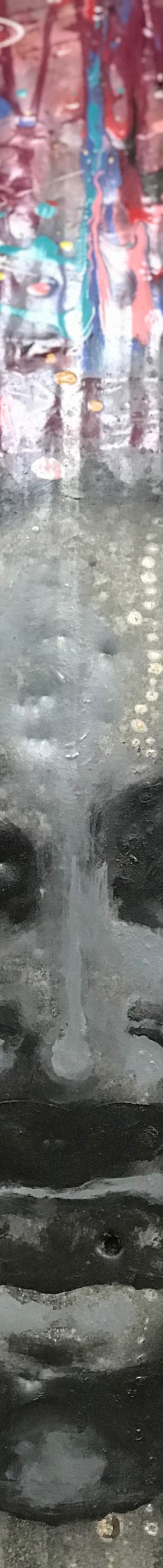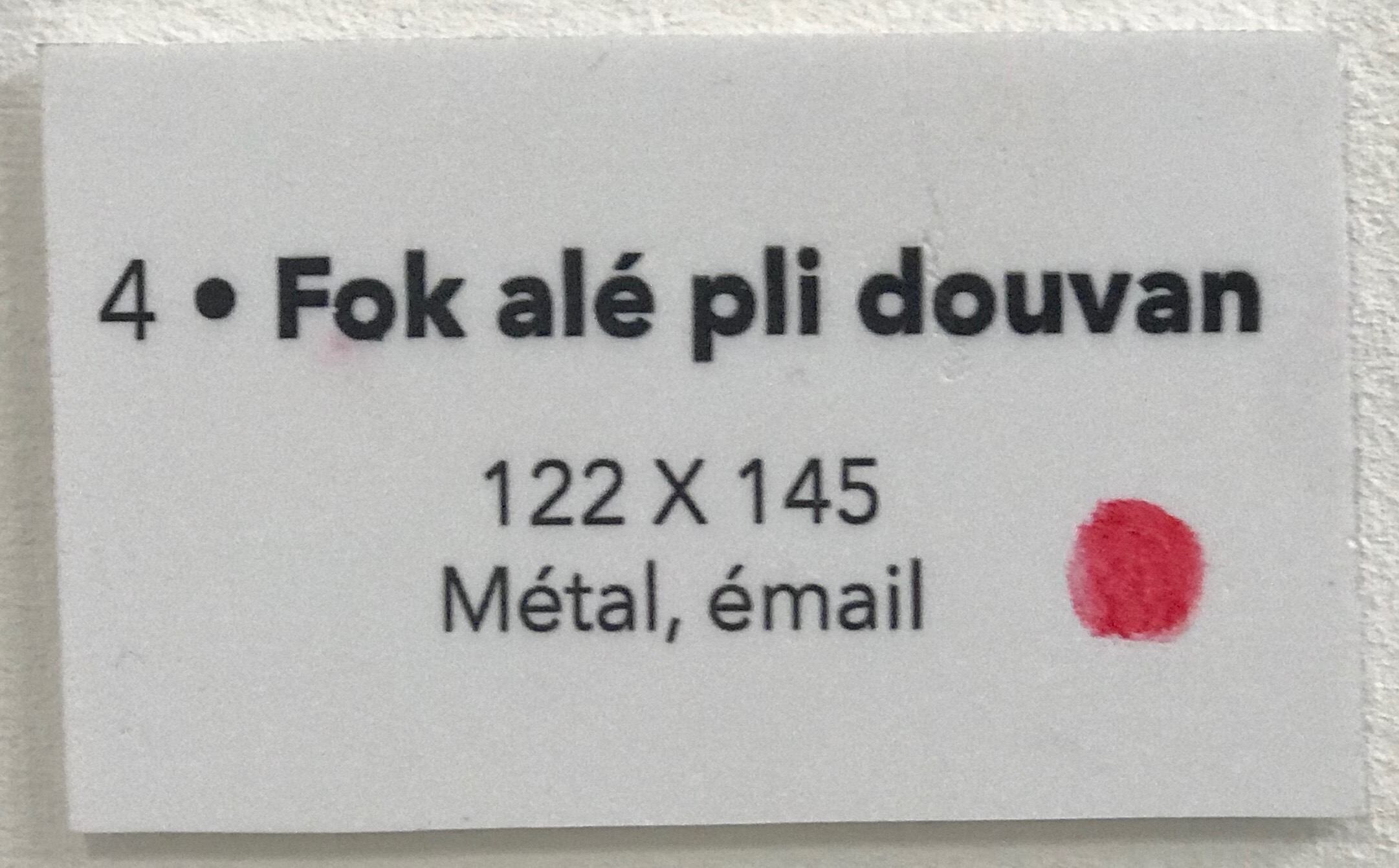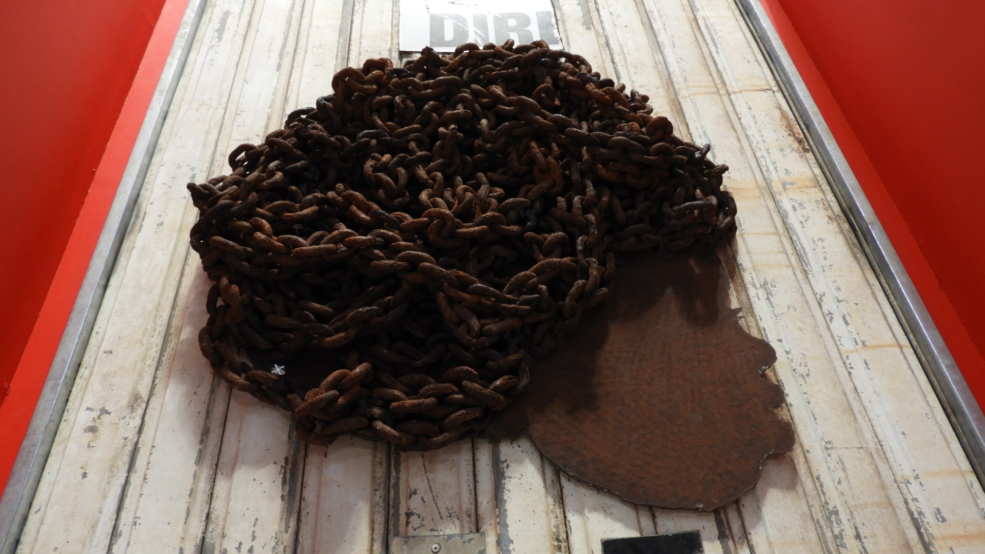 En effet, s’y dévoilait au bout d’un « boyo » sombre, une oeuvre monumentale accrochée dans une enclave rouge, dans le mur blanc de la paroi de la « matrice ». « Dire sanmo ». Qu’entends-tu ? Es-tu à l’écoute ?