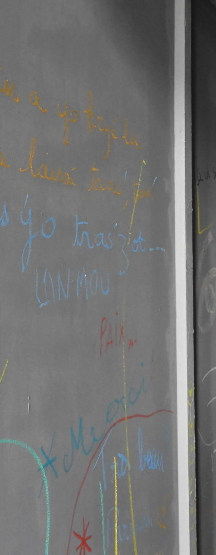Les participants furent invités à laisser une « TRAS » dans ce couloir, peut-être corridor, le « boyo ». Il était question d’y laisser une « TRAS » comme l’écriture architecturale d’une métamorphose. « Antré andidan kò’w ». « Matjé, trasé sa ou ka tann ».